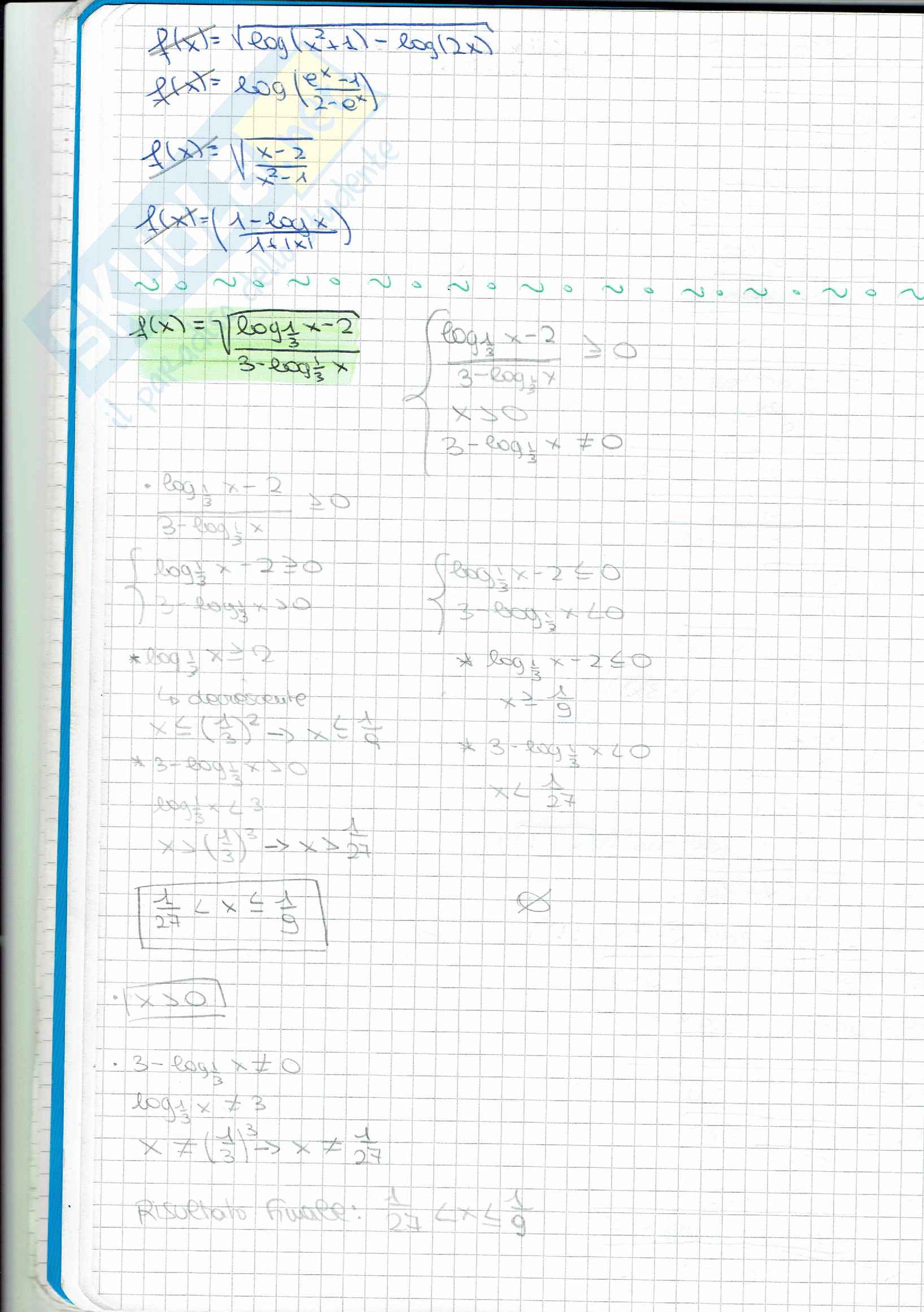 Esercizi svolti sul dominio di funzioni: Esercitazione di analisi matematica